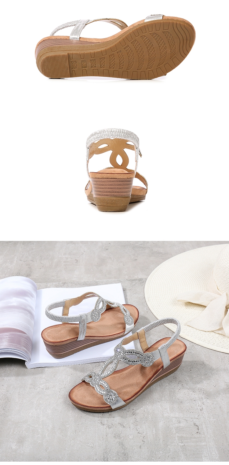 【QUEENA】奢華美鑽縷空拼貼造型坡跟羅馬涼鞋 ( 銀 )