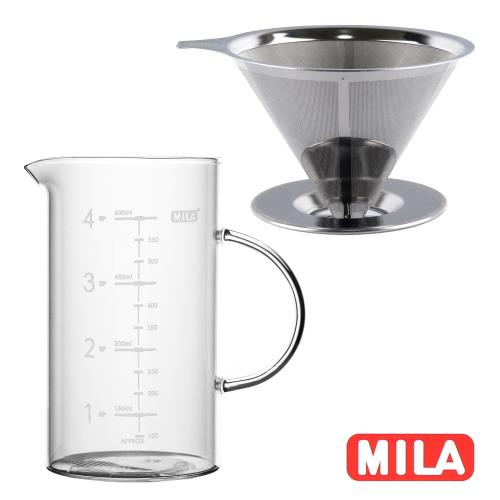MILA 立式不鏽鋼咖啡濾網+玻璃量杯650ml