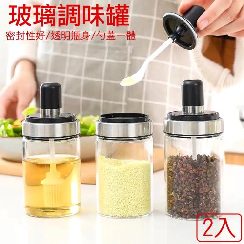 媽媽咪呀 蓋勺一體密封玻璃調味料罐2入(圓柱蓋)