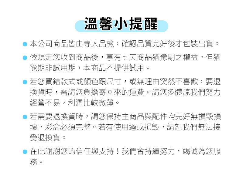 5.使用完畢請置於通風陰涼處,避免陽光直射