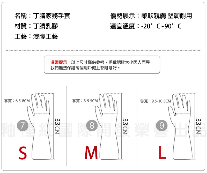 1.本品為外銷歐美單,採用高成本丁材質,耐用不易破,非市面上廉價易破塑料手套