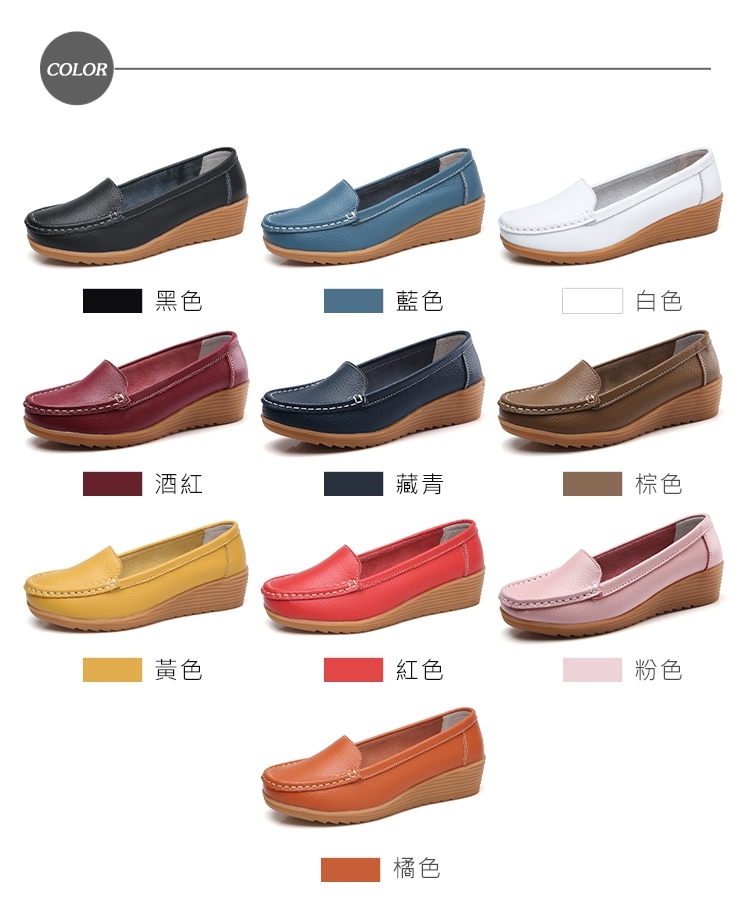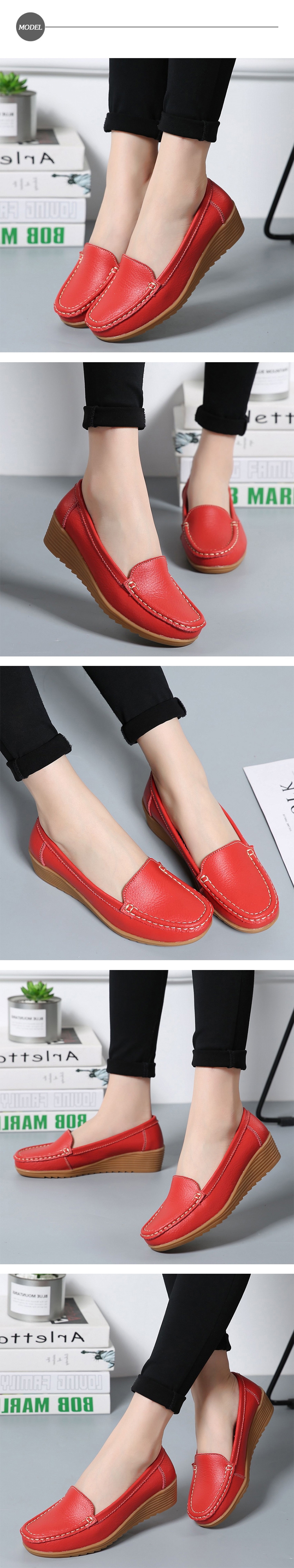 【LOVE FOOT 樂芙】真皮純色素面百搭舒適坡跟休閒鞋 ( 紅 )