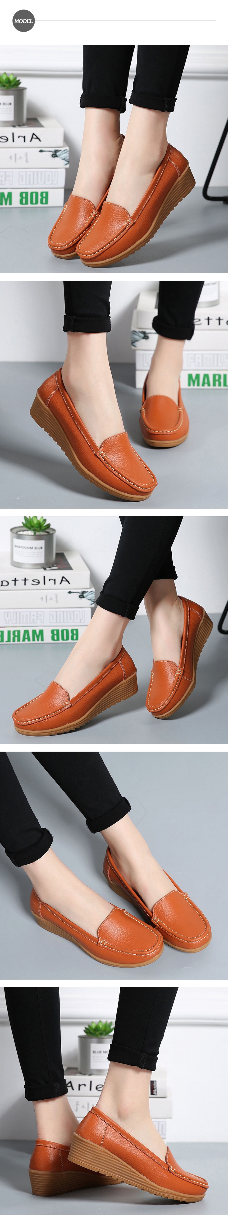 【LOVE FOOT 樂芙】真皮純色素面百搭舒適坡跟休閒鞋 ( 橘 )