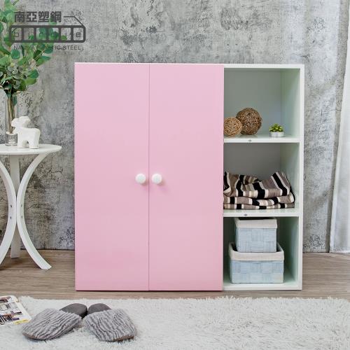Birdie南亞塑鋼-防水3尺二門三格組合式塑鋼衣櫃/單吊桿收納衣櫃(白色+粉紅色)