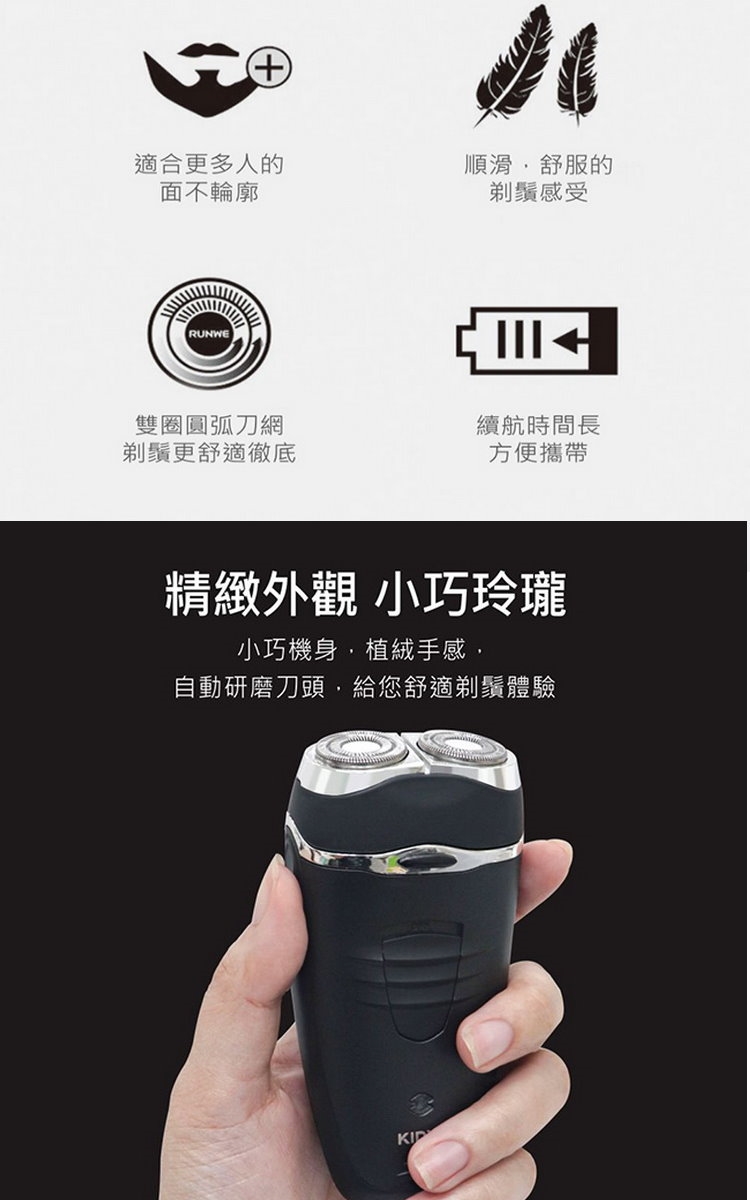 ■雙環極速刀網+銳利鋼刀,刮鬍乾淨俐落。