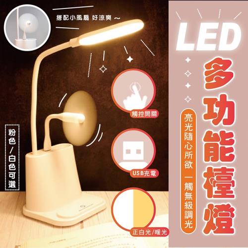 多功能檯燈充電觸摸LED檯燈風扇(手機架+筆筒+小夜燈+USB風扇)