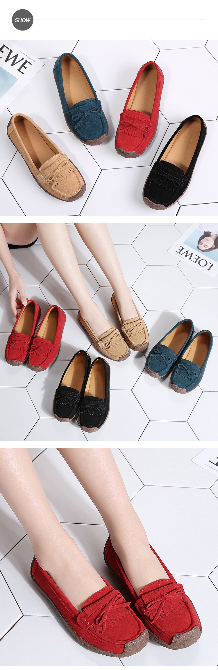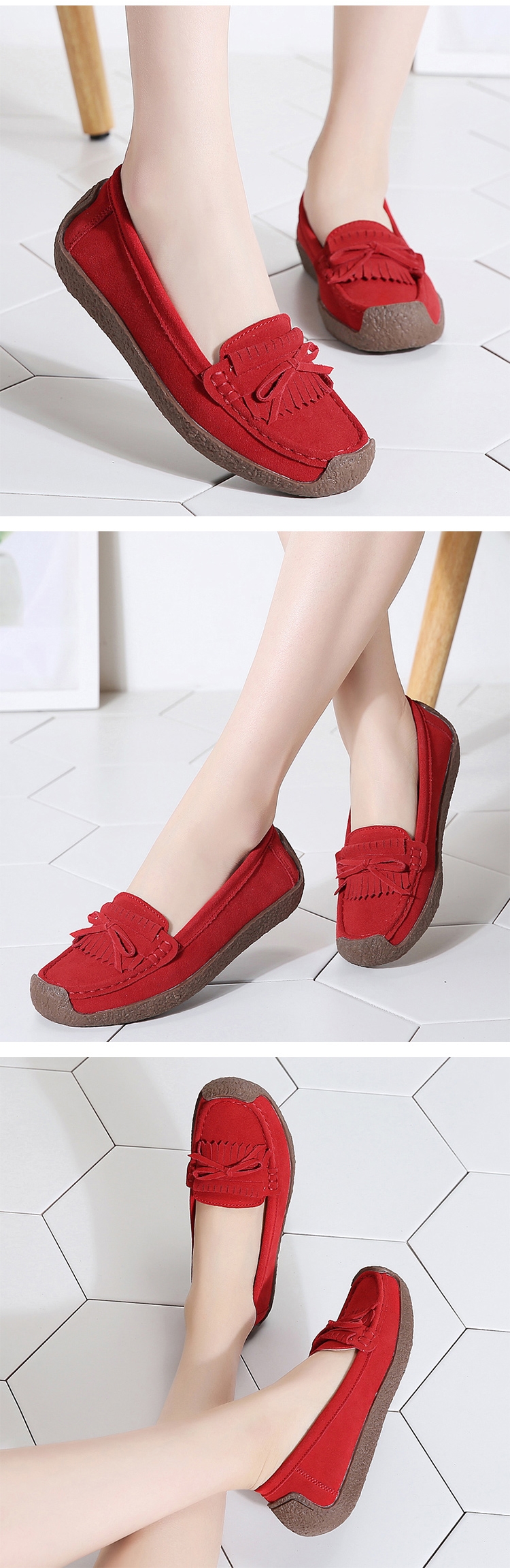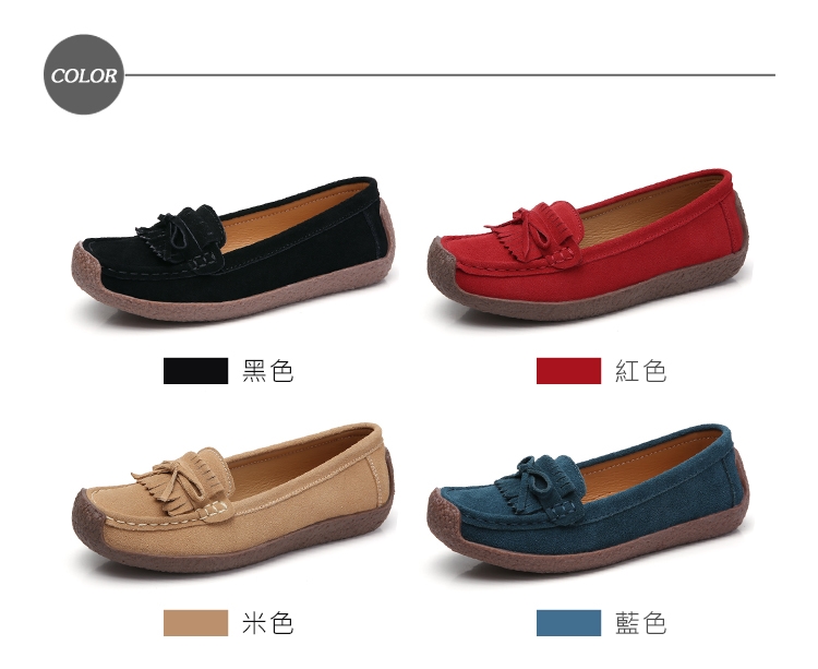 SOFT WALK 舒步真皮翻絨牛皮小流蘇蝴蝶結舒適百搭蝸牛鞋 ( 紅 )