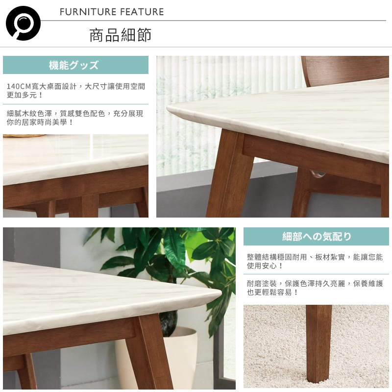精緻石面桌面,細膩質感清晰,光澤亮麗好清潔,輕鬆營造舒適氣息!