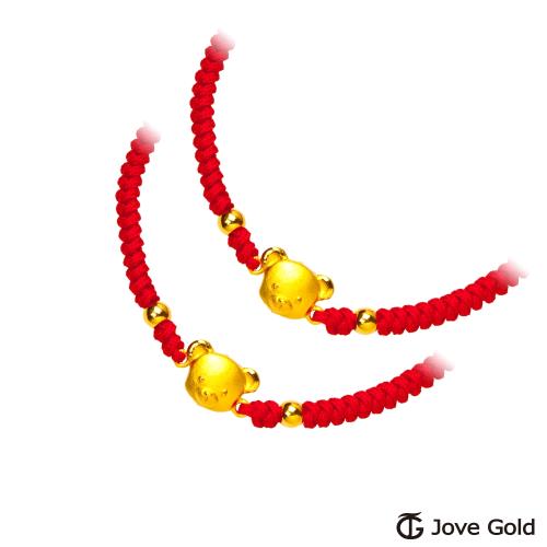 JoveGold漾金飾 熊可愛彌月成對黃金紅繩手鍊