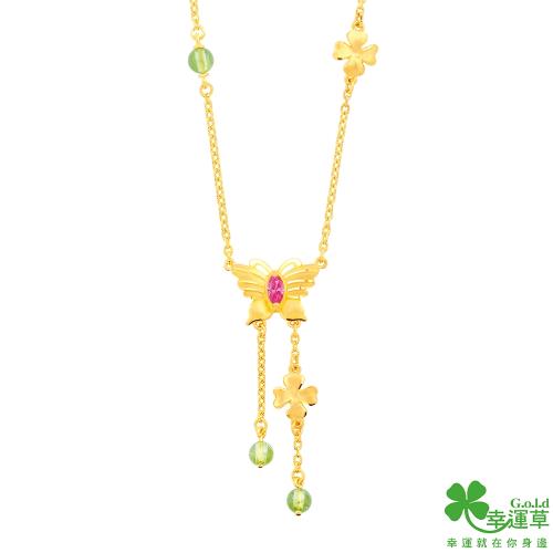 幸運草金飾 幸運福蝶黃金項鍊(大)-橄欖石