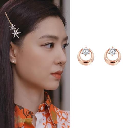 【Emi艾迷】愛的迫降徐智慧小巧點鑽環繞玫瑰金925銀針耳環