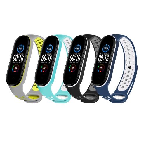 小米手環 5/6/7代適用 撞色運動風 矽膠洞洞錶帶