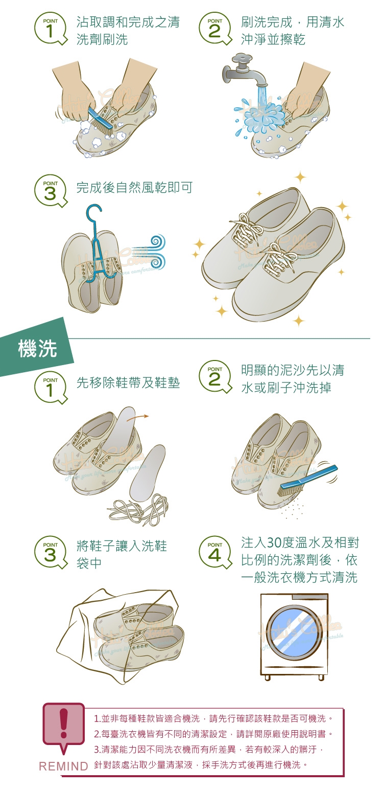 1.並非每種鞋款皆適合機洗,請先行確認該鞋款是否可機洗。