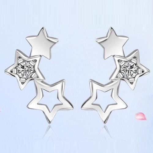 【Emi艾迷】韓國925銀針極簡系列星星相連鋯石耳環