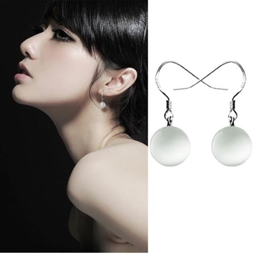 【Emi艾迷】韓國簡單寧淨純圓透白柔軟貓眼石耳勾耳環