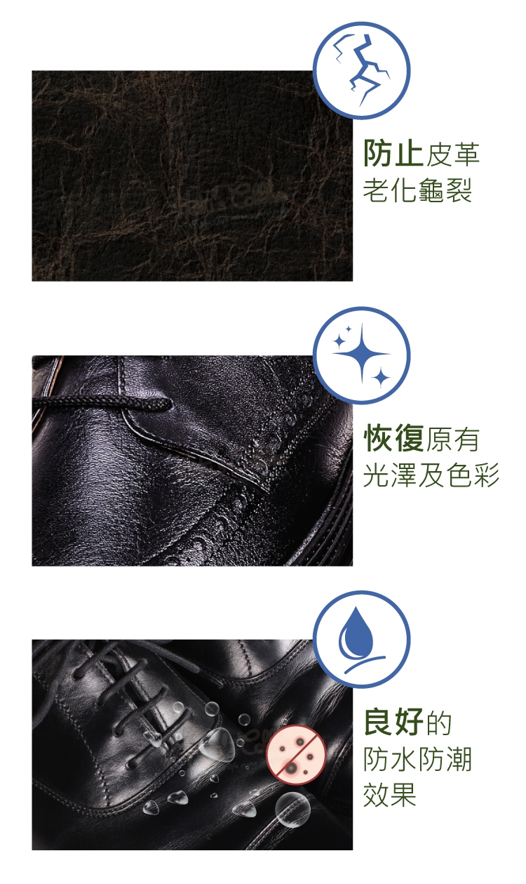 內含滋養及防水成分,可防止皮革老化龜裂與