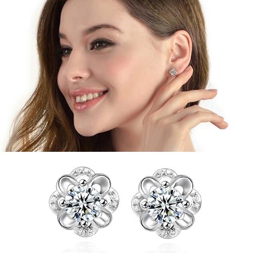 【Emi艾迷】韓國925銀針綻放完美模樣花朵鋯石微鑲耳環