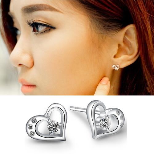 【Emi艾迷】韓國925銀針愛情永恆愛心鏤空點鑽微鑲耳環