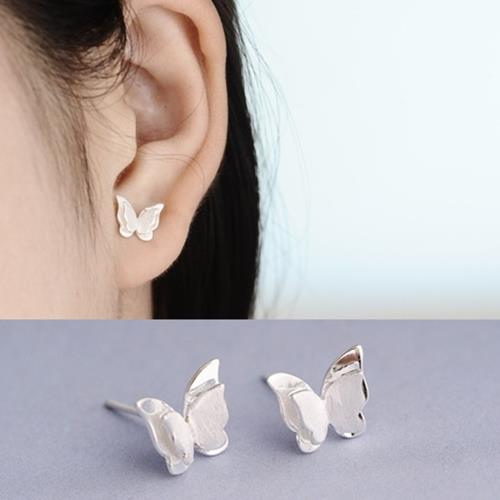 【Emi艾迷】韓國清新系列雙翼蝶舞拉絲925銀針耳環