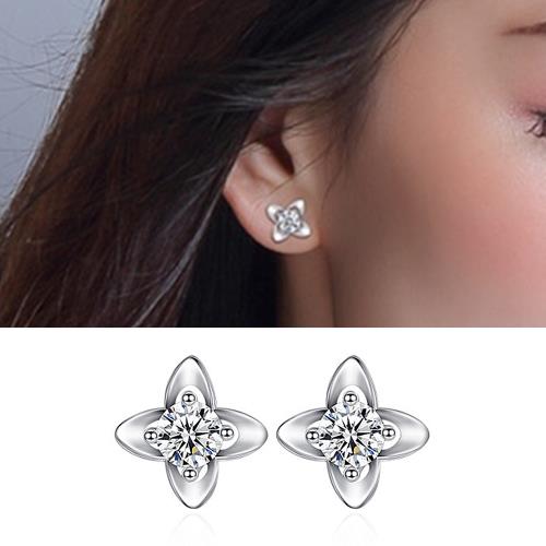 【Emi艾迷】韓國925銀針幸運花語唯美點鑽花瓣耳環