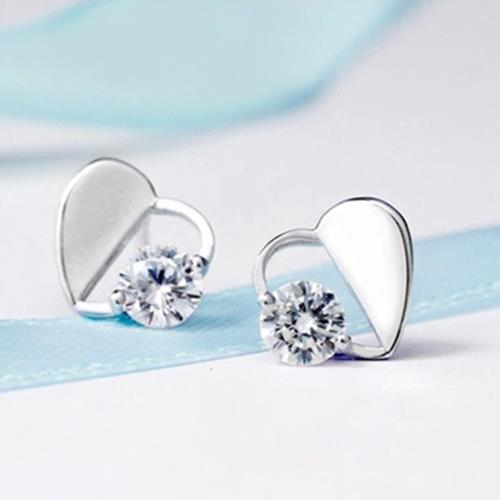 【Emi艾迷】韓國925銀極簡系列愛心光影鏤空點鑽耳環
