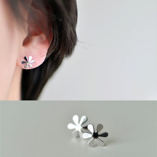 【Emi艾迷】韓國小清新亮面花瓣925銀針耳環