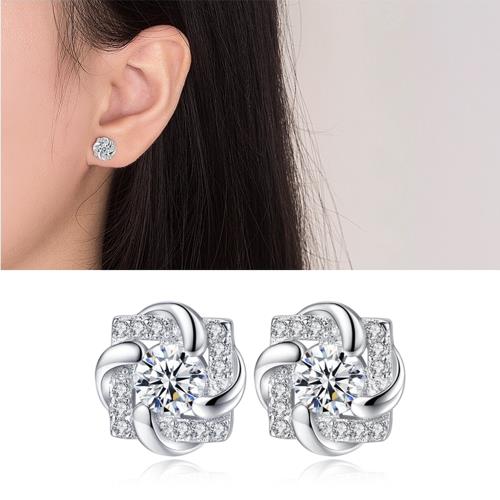 【Emi艾迷】925銀針氣質永恆方圓旋轉鋯石耳環