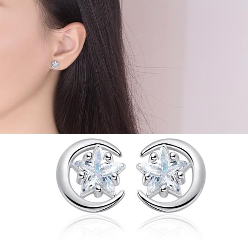 【Emi艾迷】925銀針披星戴月神秘星月鋯石耳環