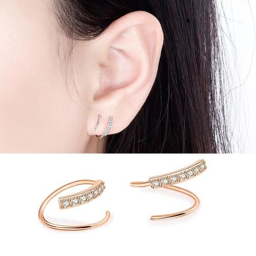 【Emi艾迷】韓系925銀針簡約舞動鋯石旋轉耳環
