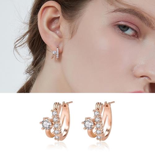 【Emi艾迷】韓系優雅閃耀點鑽環繞鋯石耳扣耳環