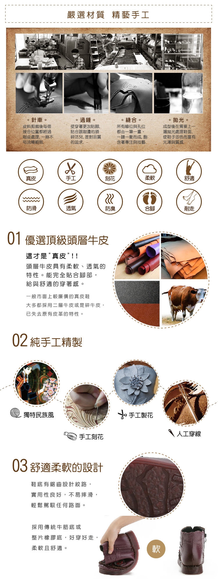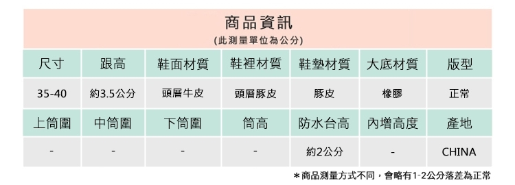 2.鞋類商品依功能及用途之不同,鞋底各有其止滑係數之個別不同,使用鞋類商品請用於正常平坦之路面,非雨鞋或雨靴類商品,請避免穿著於下雨濕滑路面上行走。