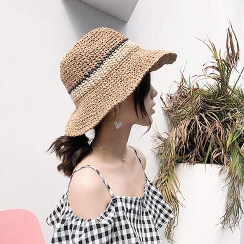 【Emi艾迷】韓國優雅氣質飄飄清爽百搭拉菲草遮陽帽草帽
