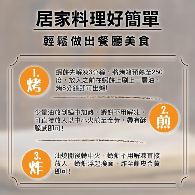 成分:蝦仁、高級魚漿、非基改玉米粉、豬板油(台灣)、糖、胡椒粉、鹽、酵母萃取物