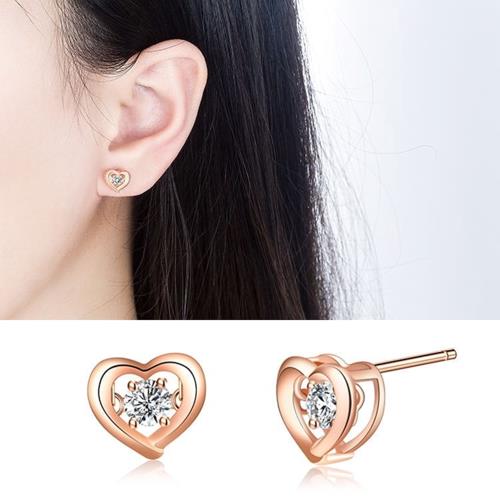 【Emi艾迷】韓劇同款浪漫初心點鑽舞動玫瑰金耳環