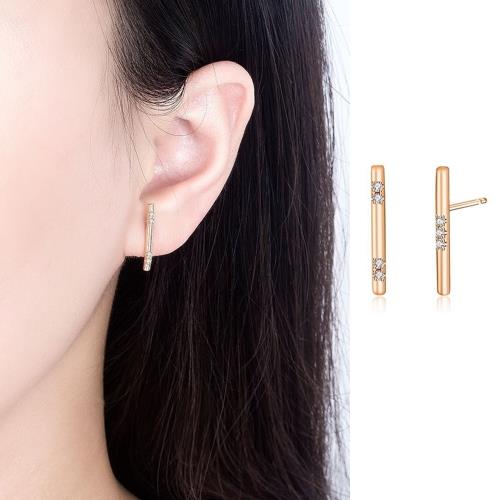 【Emi艾迷】韓劇同款微奢一字點鑽微鑲玫瑰金不對稱耳環