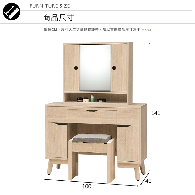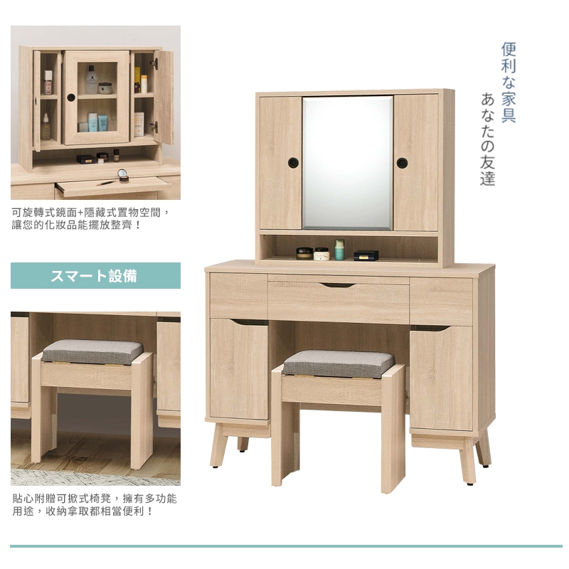 貼心附贈同款可掀式收納化妝椅,幫您省去額外搭配的煩惱!