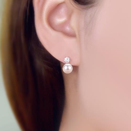 【Emi艾迷】韓國925銀針簡約系列點鑽珍珠耳環