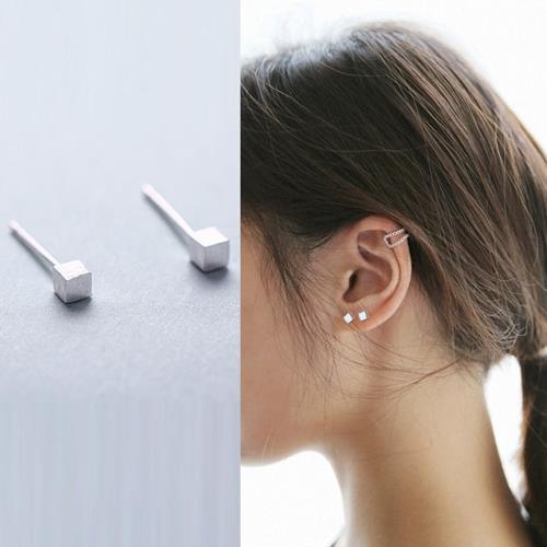 【Emi艾迷】韓國925銀清新系列拉絲方塊簡約耳環