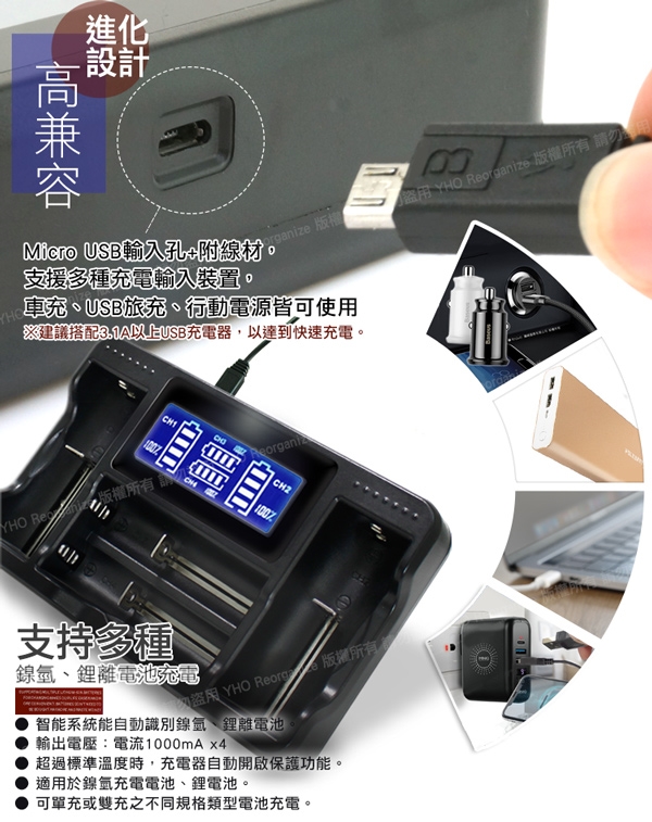 YHO LCD-18650 液晶充電器 (四槽旗艦版)