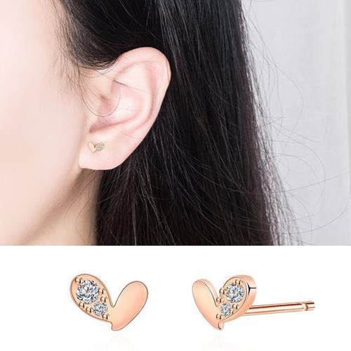 【Emi艾迷】韓劇同款獨特樣貌愛心綴鑽玫瑰金耳環