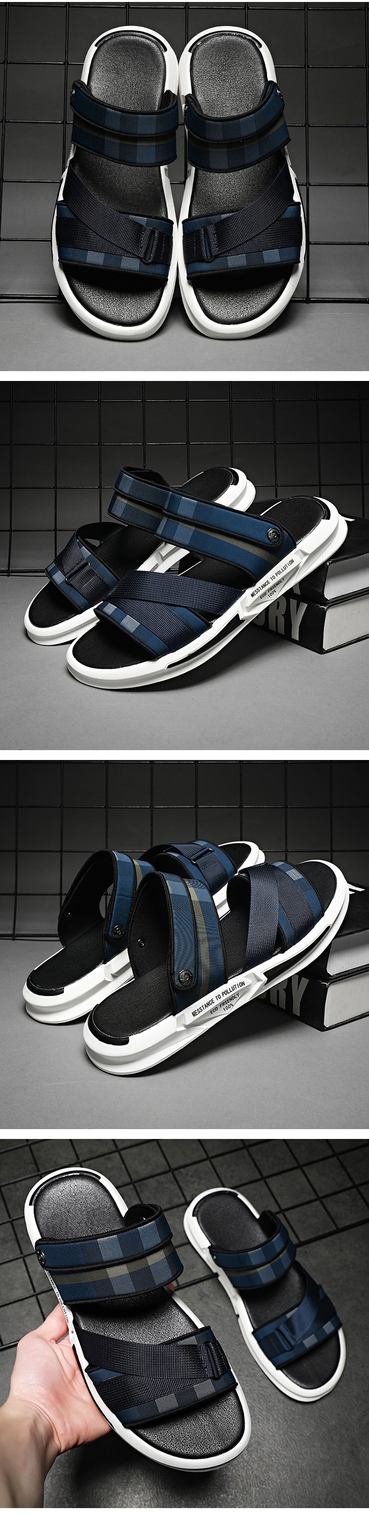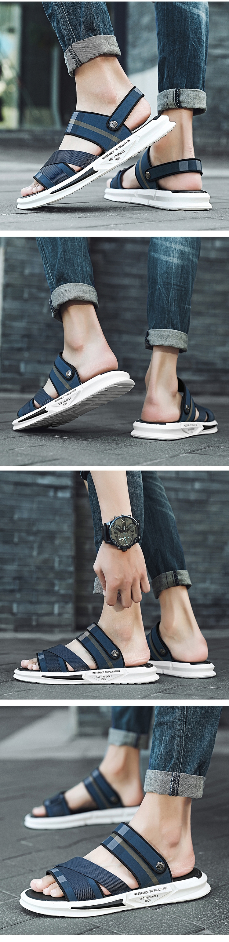 【Kiron】兩穿法時尚運動風格紋拼接休閒涼拖鞋 ( 藍 )