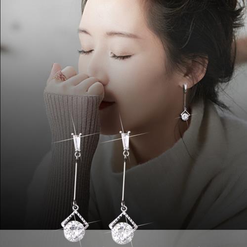 【Emi艾迷】韓國925銀針璀璨靈感內鑲單鑽垂墜耳環