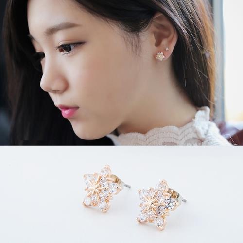 【Emi艾迷】韓國925銀針寧靜如雪花輕飄鋯石耳環
