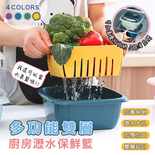 DaoDi廚房雙層收納瀝水保鮮盒(瀝水籃 蔬菜水果籃 保鮮盒)
