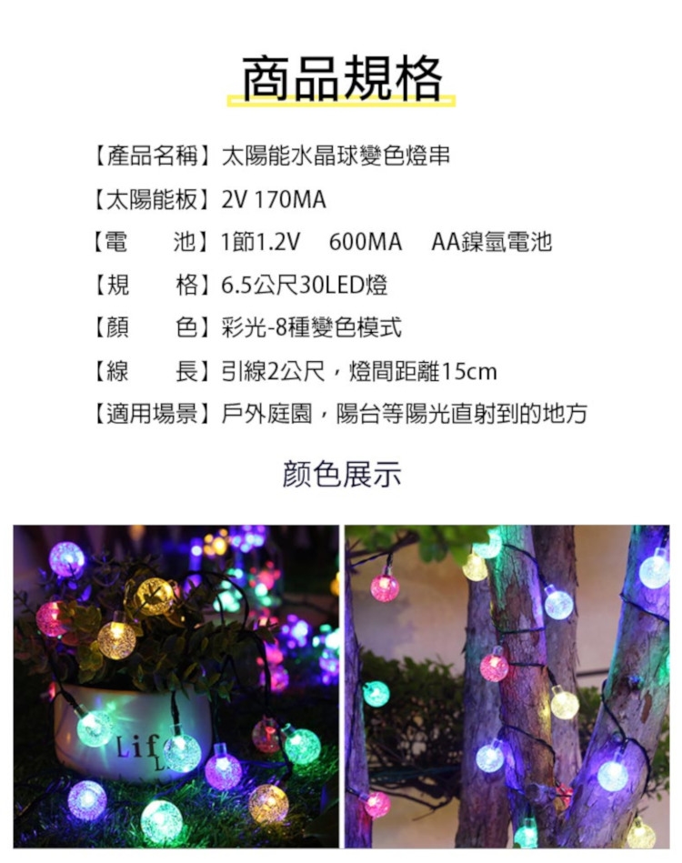 商品名稱:太陽能防水氣泡球30顆LED裝飾燈組