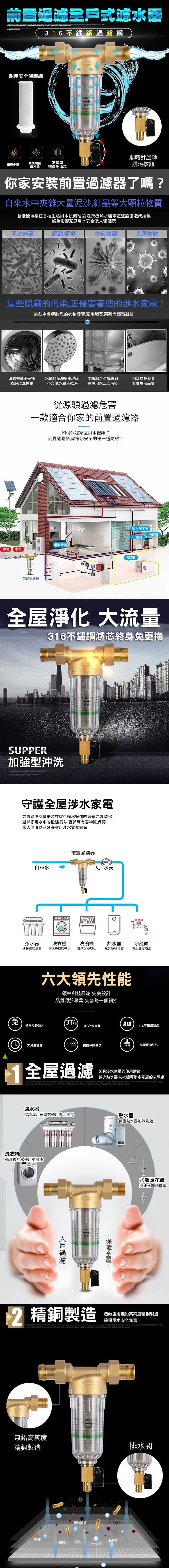 前置過濾全戶式濾水器 高密度316不鏽鋼濾網,高效攔截固體雜質、泥沙、毛髮與藻類...等物質