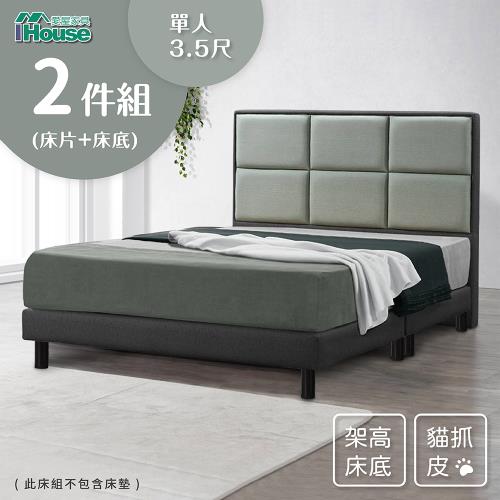 IHouse-艾瑞克 6方格貓抓皮(床頭+高腳床台) 房間2件組 單大3.5尺