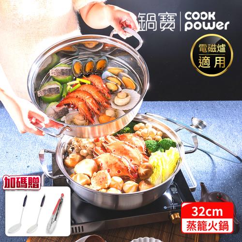 【CookPower 鍋寶】304不鏽鋼蒸籠火鍋32CM贈火鍋小幫手三件組