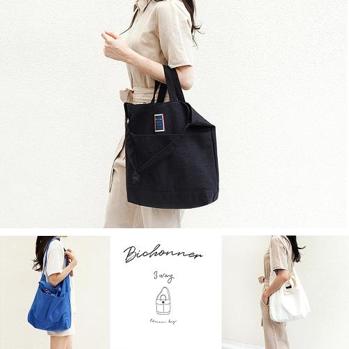 【韓國創意品牌 invite.L】三用包設計!! 肩背手提斜背包 輕便百搭休閒風 手提包 肩揹包 亞麻帆布包 韓國空運