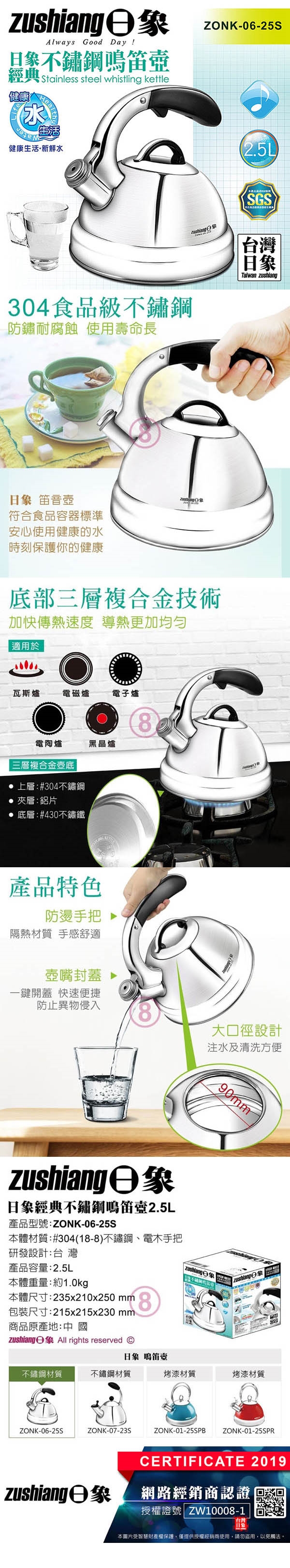 日象 經典不鏽鋼鳴笛壺2.5L ZONK-06-25S